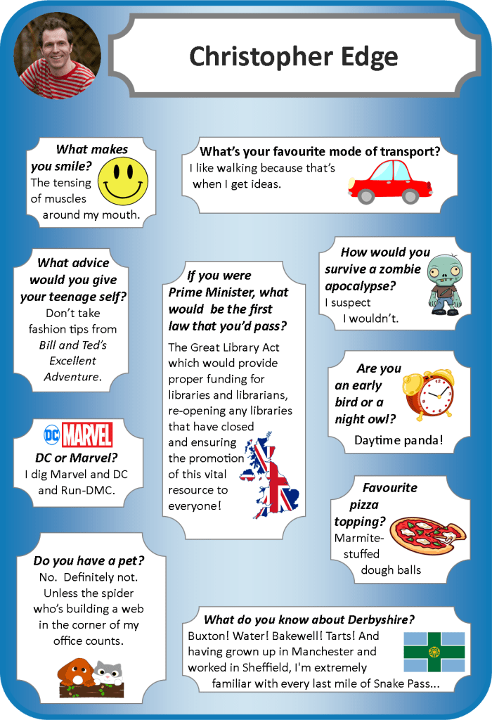 October 22, 2018October 22, 2018 eckschlibn Q&A with Christopher Edge After a successful time at Cheltenham Literature Festival, Christopher Edge was able to answer our questions… Share this: Click to share on Facebook (Opens in new window) Facebook Click to email a link to a friend (Opens in new window) Email Click to share on LinkedIn (Opens in new window) LinkedIn Click to share on Pocket (Opens in new window) Pocket Click to share on Threads (Opens in new window) Threads Click to share on WhatsApp (Opens in new window) WhatsApp Click to share on Bluesky (Opens in new window) Bluesky Like Loading...